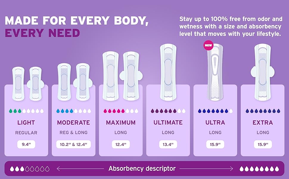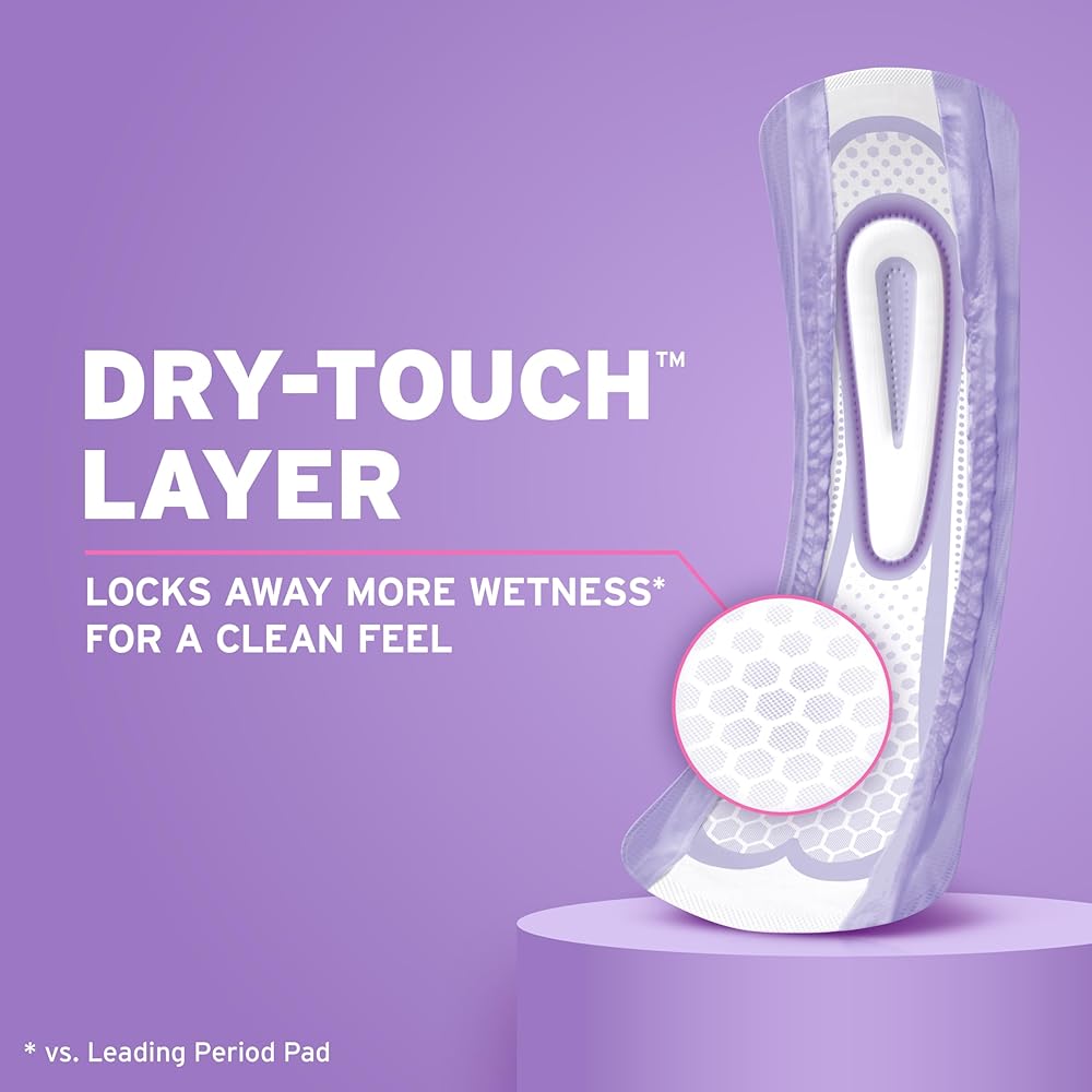 DESIGNED TO KEEP YOU DRY — Our women's pads feature a Dry-Touch layer that locks away more wetness than the leading period pad for a clean, dry feel