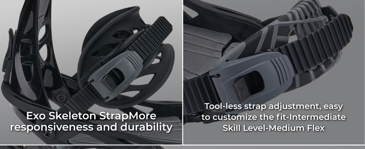 Delivers Support and Control-Reinforced Toe Caps and Binding Straps with aluminum buckle binding ratchet straps connect your snowboard boots to the snowboard binders to improve carving and enhance any snowboard package