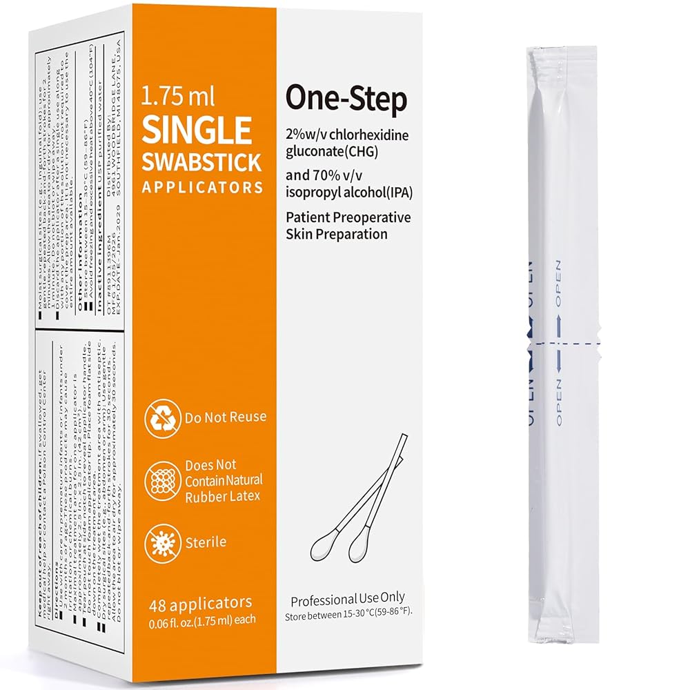 1.75ml Sterile Swabsticks with Chlorhexidine & Isopropyl Alc (Box of 48), Pre-Saturated for Skin Preparation, Injections & Wound Care, Individually Sealed