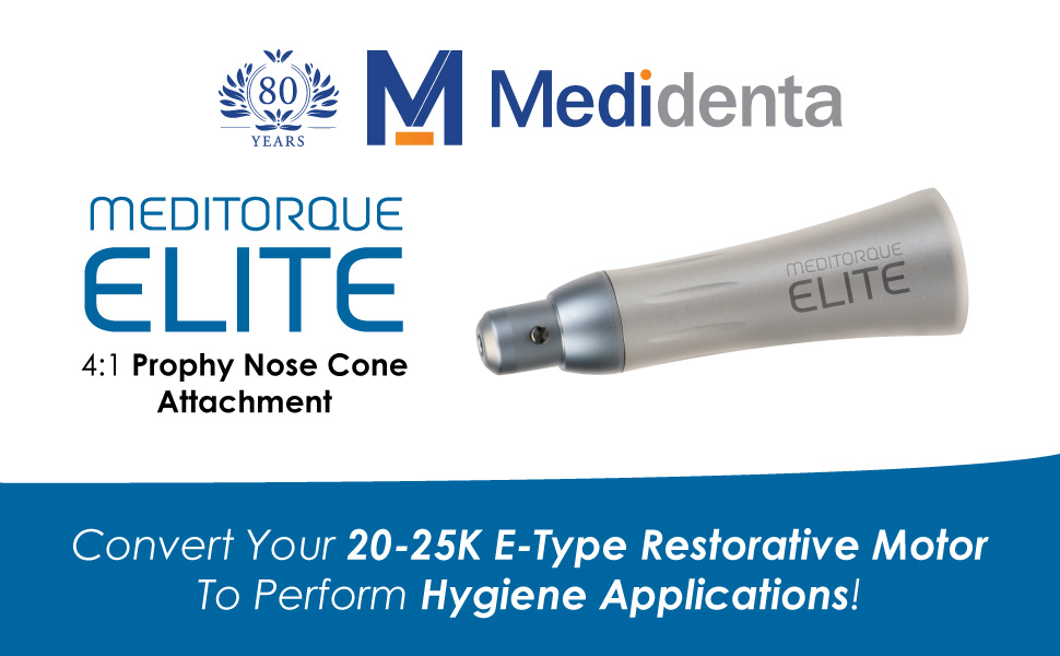 MEDIDENTA Meditorque Elite 4: 1 Prophy Nose Cone, 5, 000rpm 4: 1 Low-Speed Dental Handpiece 4 Holes, Push-Pull Friction Grip Chuck- Low Vibration and Ergonomically Designed For Seamless Grip