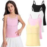 Premium Cotton-Spandex Blend, Soft, Breathable & Unrestrictive: This girl cami crafted from a 95% cotton + 5% spandex fabric, it's ultra-soft, skin-friendly, and stretchy, with excellent breathability to wick away moisture. The sleeveless cut and flat-lock seams allow full freedom of movement for dance or play, keeping girls cool and comfortable all day long.