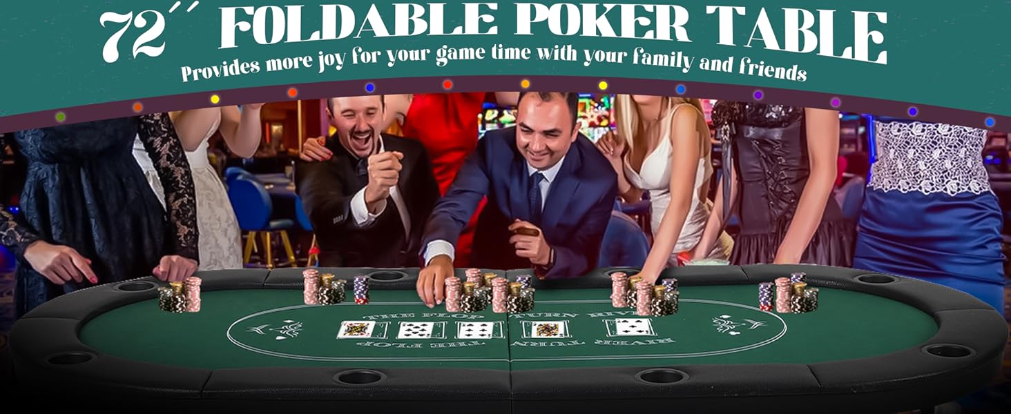 72 Inch Large Poker Table: This perfect-sized Folding Poker Table accommodates up to 8 players simultaneously, making it ideal for family gatherings, friends entertaining parties, bar games, and more.