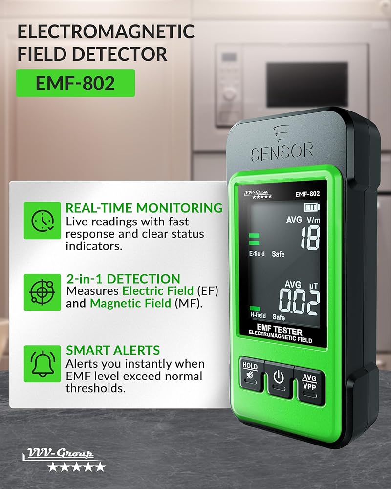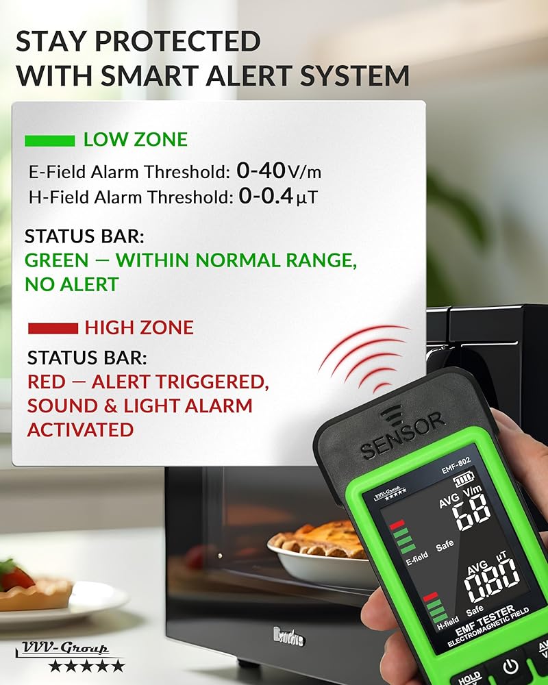 REAL-TIME EMF AWARENESS FOR EVERYDAY USE - Detects electric and magnetic fields around you and helps you understand your environment with clear Safe / Alert indicators — no technical knowledge required.