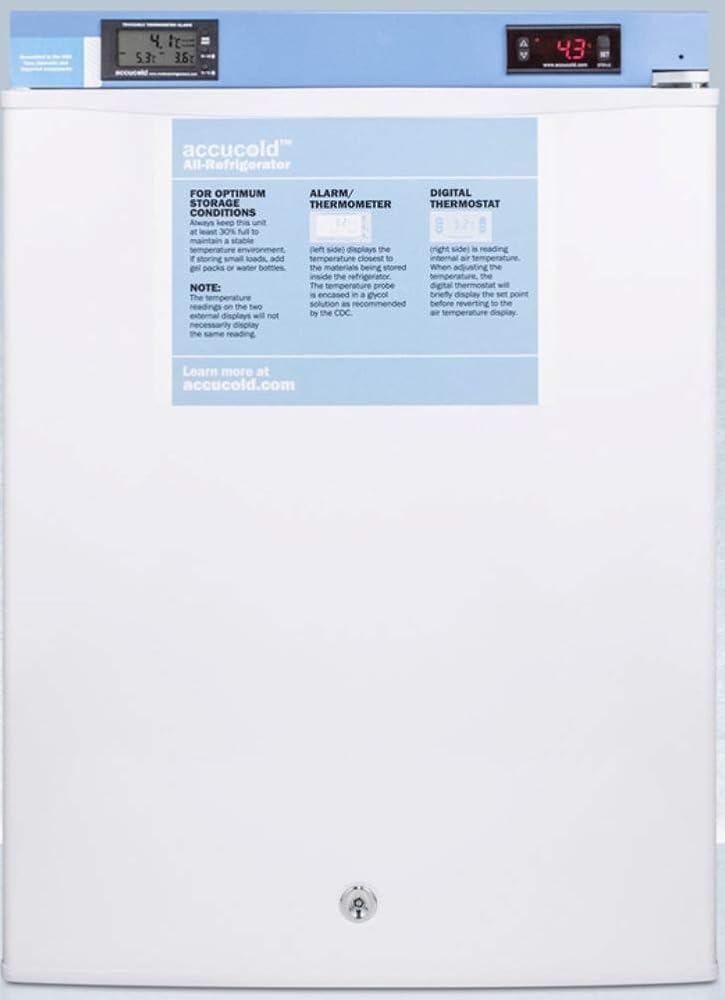 Accucold's MED2 series puts the most commonly requested features into a quality line of all-refrigerators and freezers specially designed to store vaccines and other sensitive materials in medical, scientific, pharmaceutical, and laboratory institutions. The FF28LWHMED2 is a compact all-refrigerator sized for countertop use.