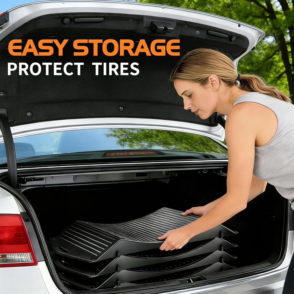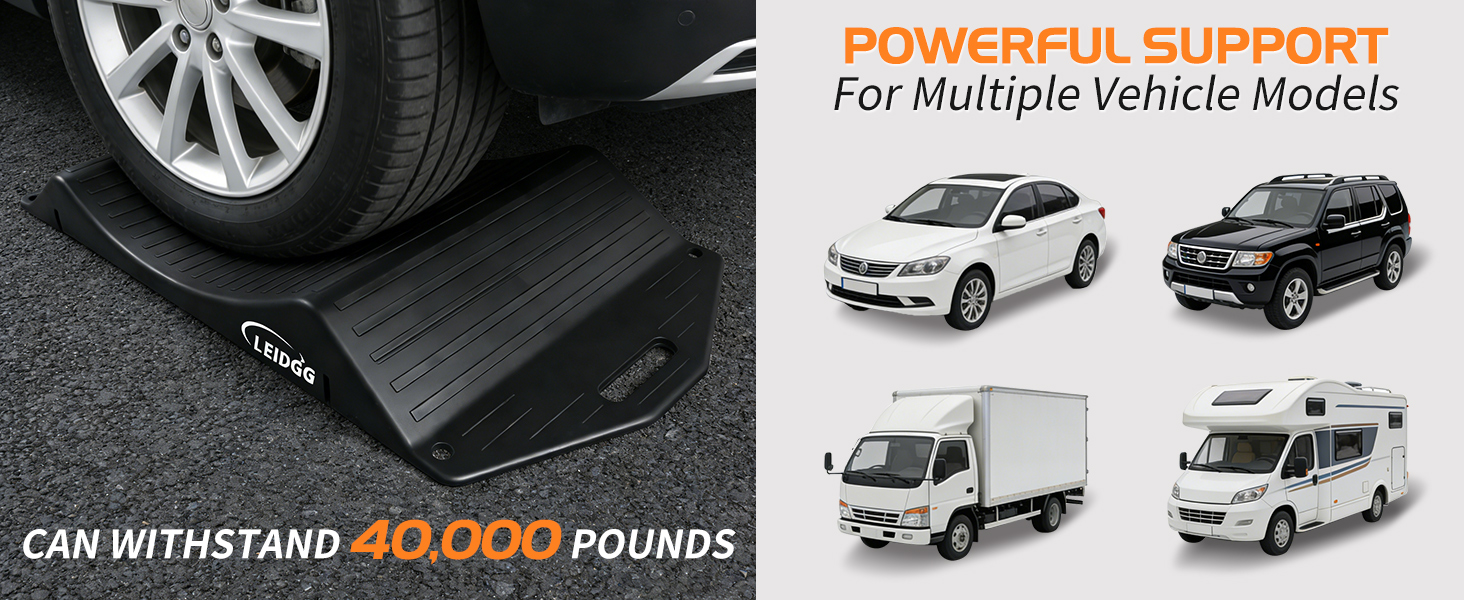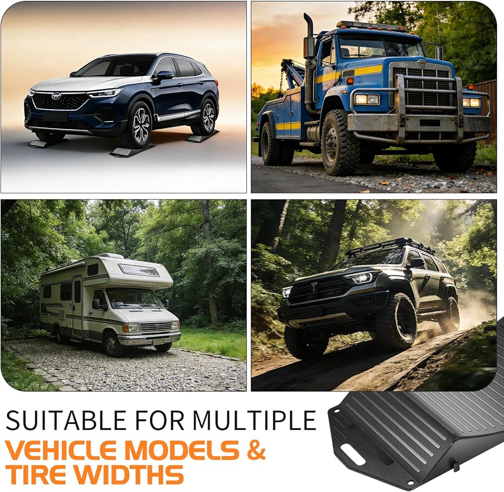 WIDE VEHICLE COMPATIBILITY:Ideal for RVs, trailers, and trucks. Verify ramp curvature matches your tire diameter before use to avoid deformation.