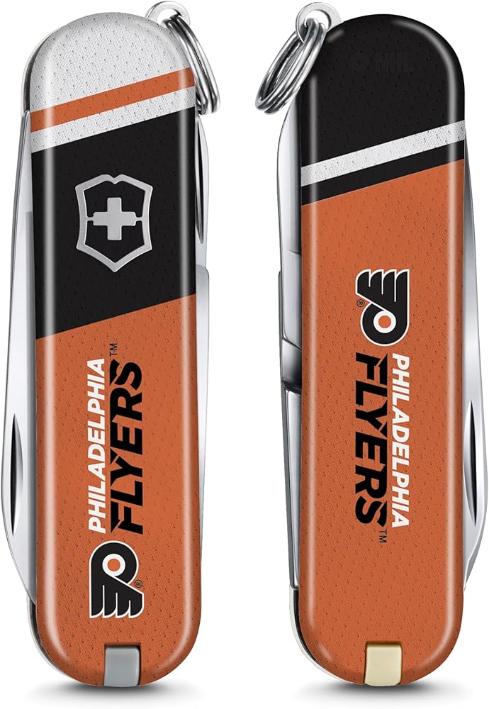 Victorinox Classic SD Swiss Army Knife – Compact 7 Function Swiss Made Pocket Knife with Small Blade, Screwdriver and Key Ring – Philadelphia Flyers