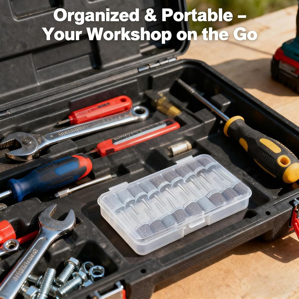 【Smart User-Friendly Design】The peel-off abrasive layers on these dremel sanding bits expose fresh surfaces without tool changes. Includes protective case for organized storage of your dremel polishing kit components.