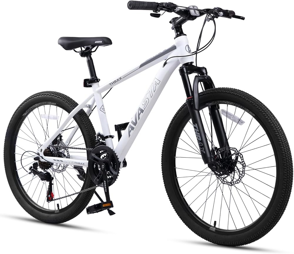 AVASTA Thrax 24 26 27.5 inch Mountain Bike with 21-Speed,High Tensile Steel Frame, Dual Disc Brake, Comfortable Saddle,Multiple Colors