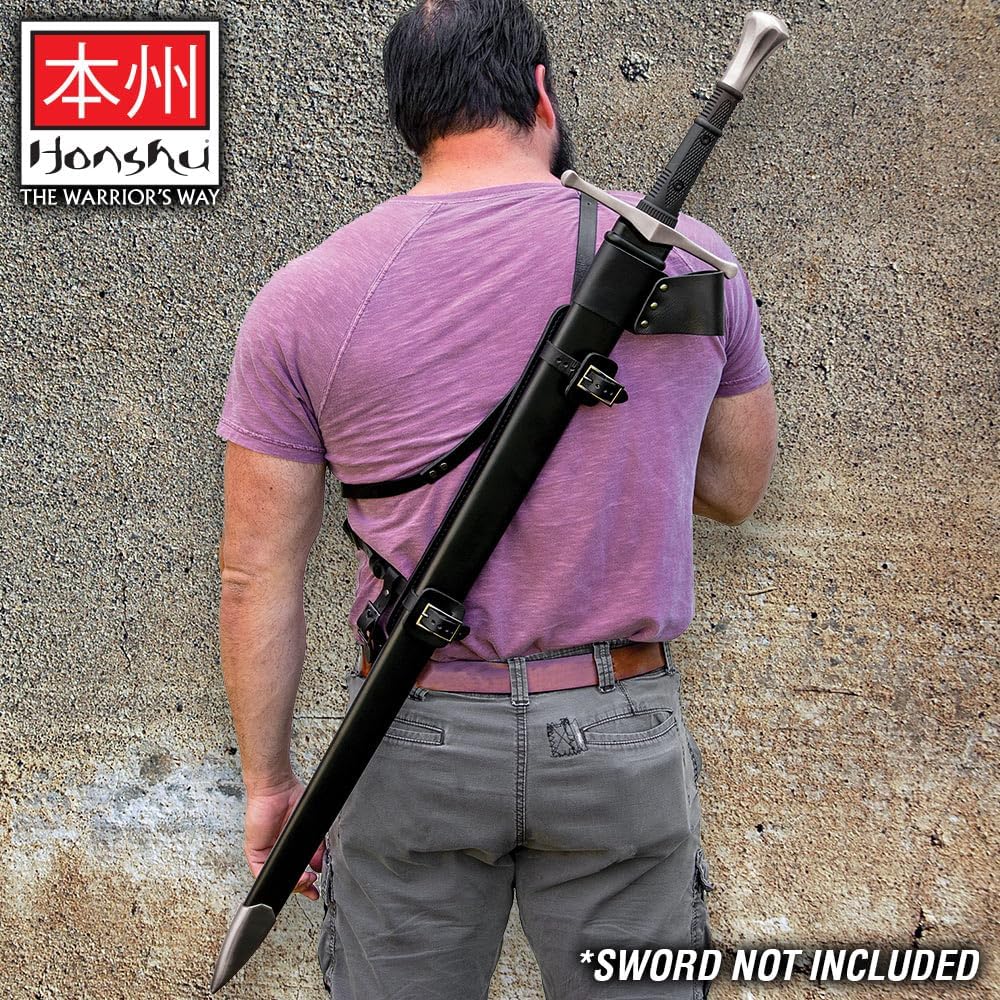 The Honshu Over-The-Shoulder Scabbard Harness is the ideal accessory for sword enthusiasts who prioritize both functionality and style in their gear. Specifically designed for the Honshu Broadsword, this scabbard harness allows for comfortable and secure carry, making it perfect for reenactments, costume use, or simply as a convenient way to transport your blade to and from practice. Crafted from durable leather and reinforced with stainless steel pins, this harness is built to withstand the rigors of active use while maintaining its integrity and appearance. The metal buckles, finished in an attractive metallic black, add an element of modern style to the traditional design, ensuring that this scabbard harness stands out for all the right reasons. Measuring 15 3/4” in length, the scabbard is designed to rest diagonally across the back, a position that not only ensures comfort but also allows for easy access to the broadsword when needed. The inclusion of both a shoulder harness and a waist belt loop guarantees that the scabbard remains secure against your body, providing peace of mind as you move. Whether you're headed to a historical reenactment, a themed event, or simply displaying your sword at home, the Honshu Over-The-Shoulder Scabbard Harness is an essential addition to your collection. It combines the practicality of modern design with the aesthetic appeal of traditional sword carry methods, ensuring that your Honshu Broadsword is always ready and secure at your side.