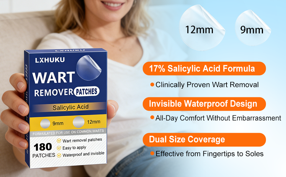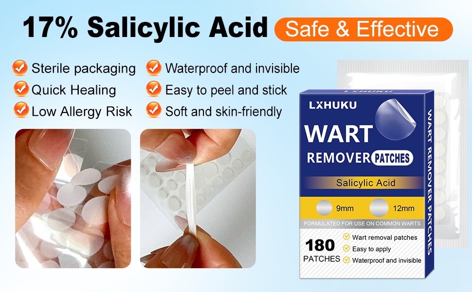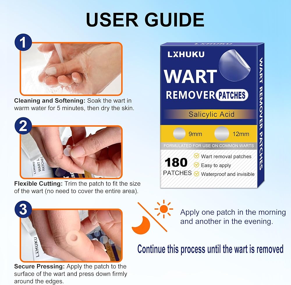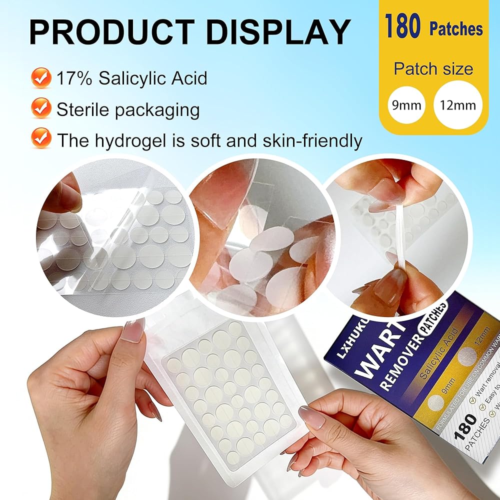 Versatile Application:With 180 patches in a pack, you have an ample supply for treating various types of skin blemishes. Suitable for plantar warts, common warts, flat warts, corns, and calluses, it provides comprehensive care for different skin concerns.