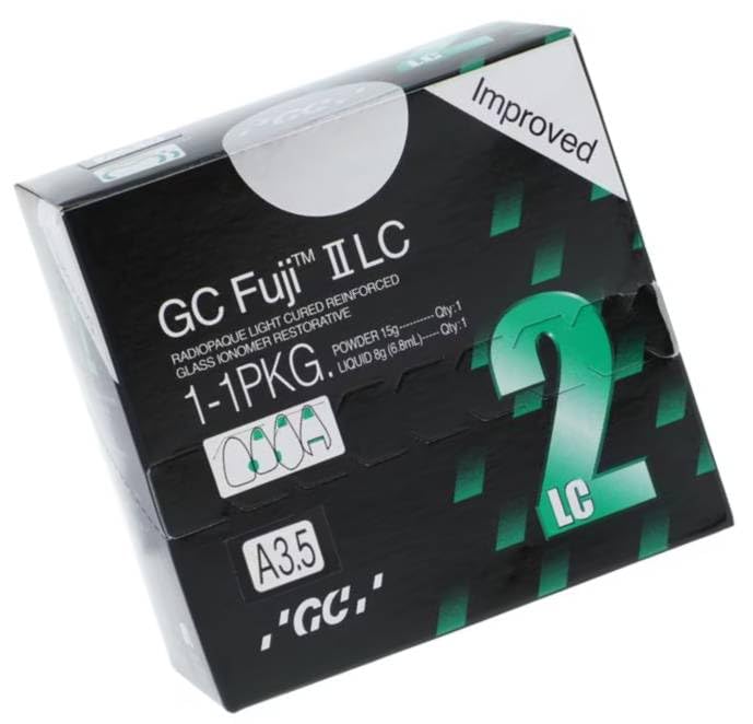 GC Fuji II LC - A3.5 - 1:1 Package, Light-Cure Resin Reinforced Glass Ionomer Restorative: 15 Gm. Powder, 8 Gm. Liquid, Mixing Pad and Measuring Scoop. #000187