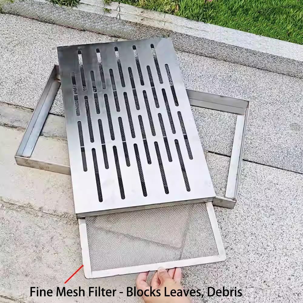 Quick Drainage & Anti-Clog Design - The wide-slot grille ensures efficient drainage even in heavy rain, while the fine mesh layer catches fallen leaves, hair and small debris to reduce clogs. Suitable for rainwater drains, patio drains, garage floor drains or outdoor sink covers.