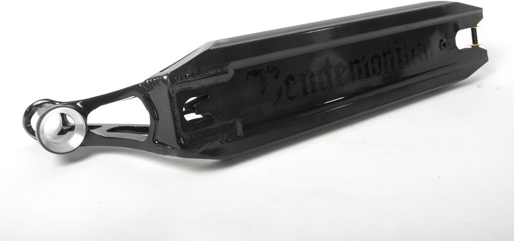 After 2 years of development, our latest fury is finally dropping, and we are proud to bring such an amazing piece to riders all over the world.Our goal with Pandemonium was to offer a new type of deck; we wanted it to have ambitious and bigger dimensions, still surpassing the existing decks in terms of reactivity.We think we reached our goal, with 120mm width and a wide profile under, it's way more stable or rails and curbs. However, thanks to a better conception and a new heat treatment, it's still lighter, stronger, more comfortable and well balanced.Our new brake technology made of nylon molded on steel, brings a real difference compared to our previous versions : stronger, quiet, more accurate and lighter.This deck is made to be long, his 570 mm length gives it a badass pop, but for those who don't want to go big, a 530 mm version and 490mm version are also available. Nothing will ever be the same again. -Verified weight : 1210g (41.6 onces) - Lenght : 570 mm (22.4 in.) or 530 mm (20.9 in.) or 490mm (19.3 in.) - Width : 120 mm (4,7 in.) - Concave : yes - Angle : 83° - Material : alu 6061 T6 - Headtube : for integrated headset - Shipped with axle and brake