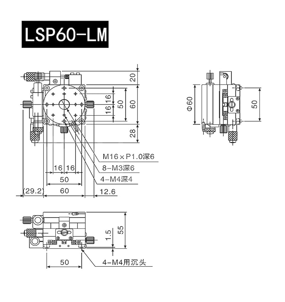 Micrometer Manual Trimming Platform XYR Axis 60mm Translation Table and Rotary Table Cross Rail LSP60-LM