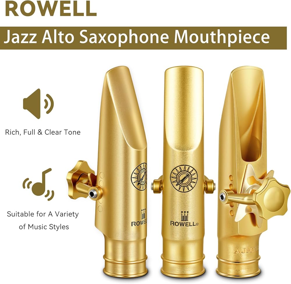 ROWELL Alto Saxophone Metal Mouthpiece Jazz Sax Mouthpiece- 5-Level Adjustable Ligature & Protective Cap Rich Full Tone -Ideal for Jazz, Bebop, Cool Jazz