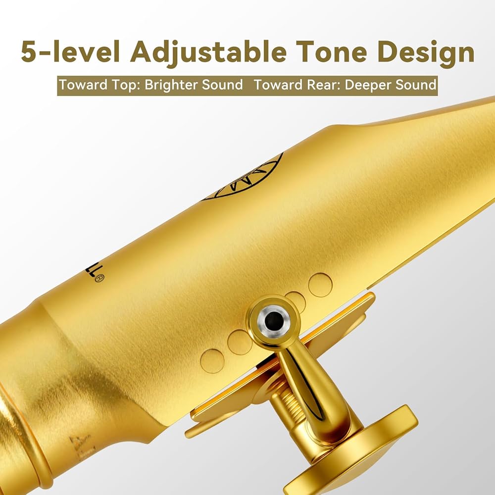 5-Level Adjustable Ligature : 5-level adjustable restraint system allows you to precisely adjust the reed's vibration feedback, much like tuning a tune. From relaxed to tight and sensitive, a single button switch perfectly matches your reed stiffness, playing habits, and musical style requirements, achieving true personalization