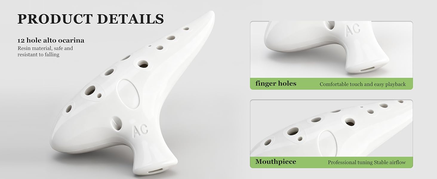 - Precise 13-Note Range:Perfectly tuned in C key (A4-F6) for rich, harmonious ocarina tones.