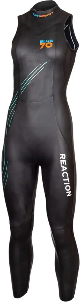 Ideal for triathletes seeking flexibility and buoyancy, the Blueseventy Women's 2024 Reaction Sleeveless Tri Wetsuit offers 1.5mm thick, semi-fleece material, stretchy fabric, easy on/off, and adjustable shoulder straps.