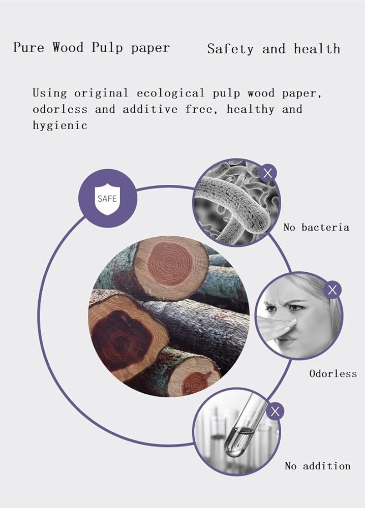 Thickened Material for Enhanced Comfort & Durability:Its reinforced fiber structure resists tearing even when wet, preventing breakage during use—solving the problem of flimsy, easily damaged regular toilet papers.