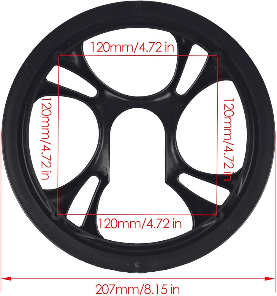 Use a caliper or ruler to measure the center-to-center distance between any two adjacent inner holes on your chainring. Compare this measurement to our specification (4.72 in / 12 cm). Incorrect measurements will result in a non-fitting guard.