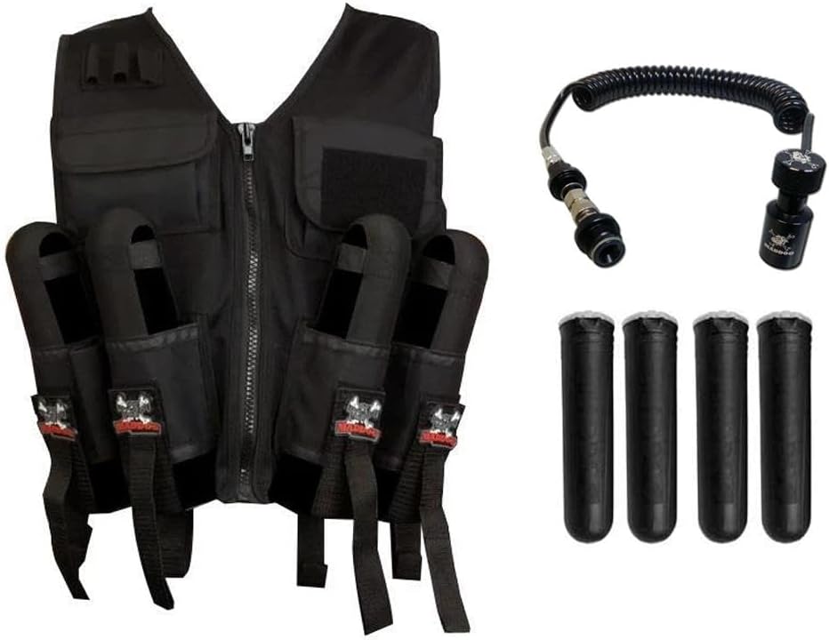 Maddog Tactical Sport Vest with Paintball Pods & Upgraded Slidecheck Remote Coil Paintball Gun Accessory Package | High Pressure Air (HPA) & CO2 Tank Compatible