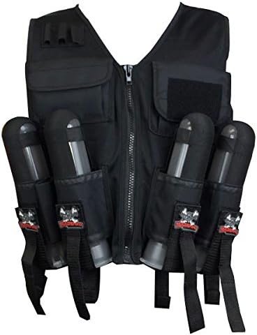 LIGHTWEIGHT TACTICAL SPORT VEST - BUILT FOR PAINTBALL! Elastic Pod Holders built with ripcords that EJECT your pods out fast! Vest holds (4) standard paintball pods to haul an extra 500+ paintballs into battle. Extra Storage Pockets - Two Chest Pockets/Pouches For: Phone, Wallet, Keys, Tools, Money, Etc. Durable scenario vest with Tank Pouch Located on the back of the vest with secure velco closure to accommodate any size CO2 paintball tank and all HPA paintball tanks up to 90 cubic inches