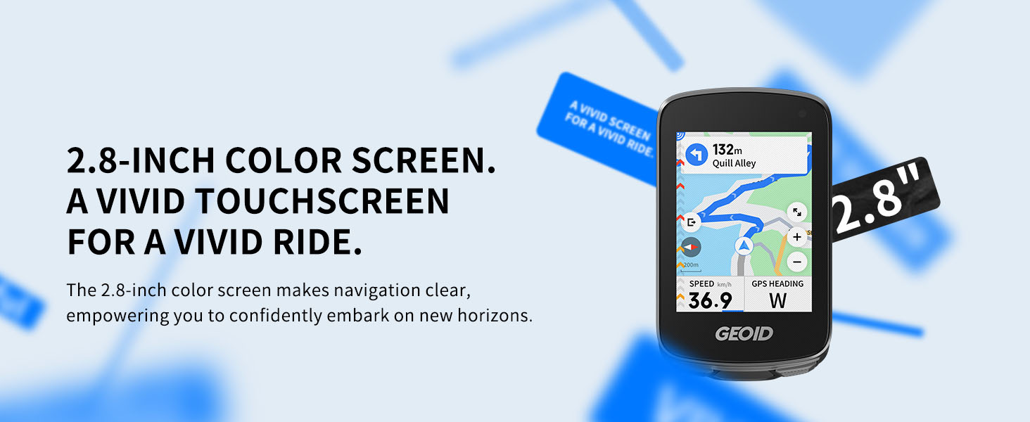2.8" Large Touchscreen: A Vivid Screen for a Vivid Ride. The 2.8-inch color screen provides clear navigation, empowering you to confidently explore new horizons. The touchscreen and 3 buttons enable faster operation and safer, more focused riding.