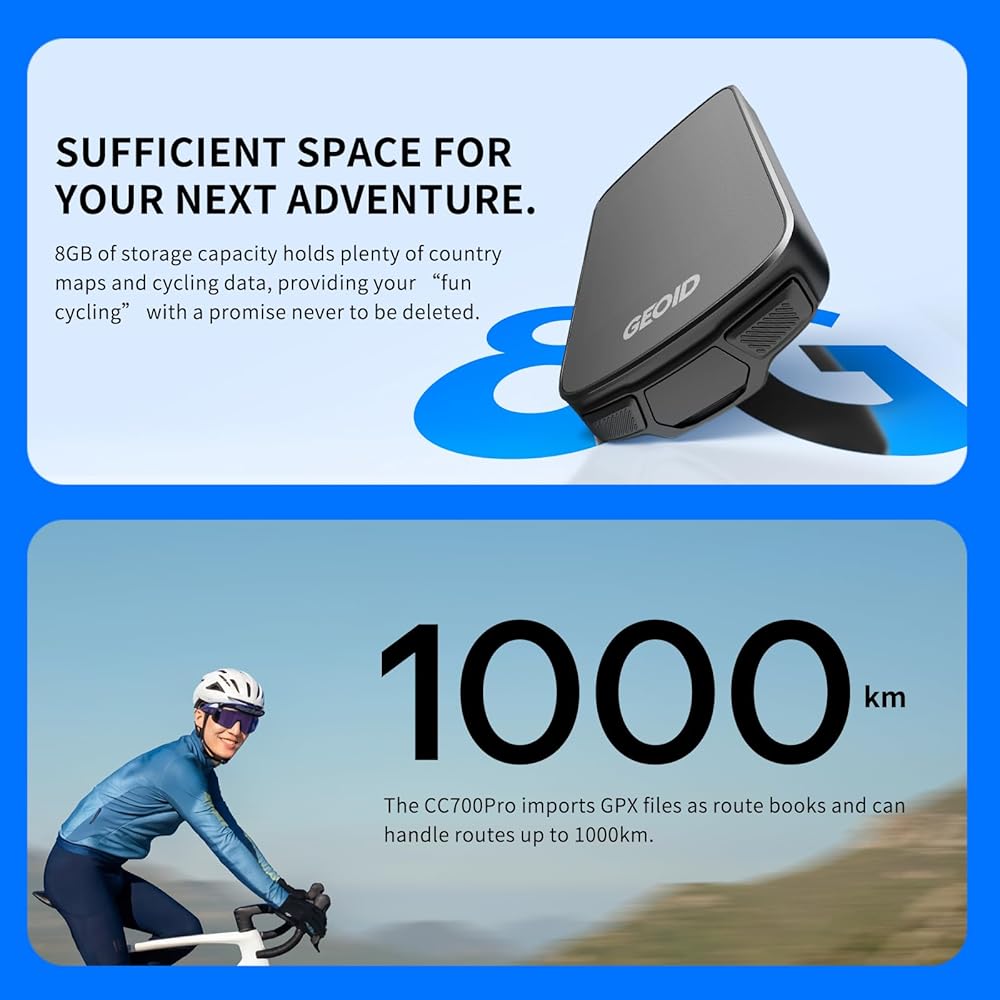 Free Indoor Training to Enhance Your Power Performance: The CC700 Pro supports indoor training with a smart trainer, allowing you to customize power targets, resistance levels, and gradients. Focus entirely on improving your performance without external factors like weather or road conditions affecting your training pace
