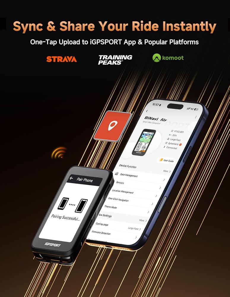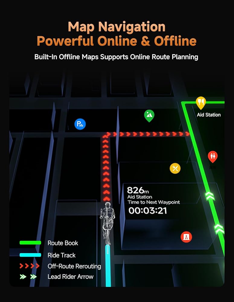 【Flagship GPS Navigation With Smart Rerouting】Powered by iGPSPORT's flagship BiNavi navigation system, this cycling computer supports offline and online navigation, fast route parsing, and accurate turn-by-turn guidance. Off-Course Replanning 2.0 quickly redirects you back on route when you miss a turn.