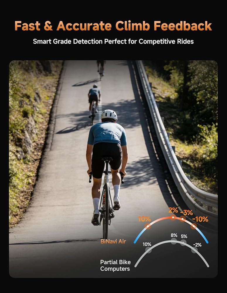 【Accurate Elevation & Gradient Data】A multi-vent barometric altimeter and advanced slope algorithms provide precise elevation gain and real-time gradient tracking, even in rain or changing weather. Color-coded gradients help you instantly understand climb intensity.