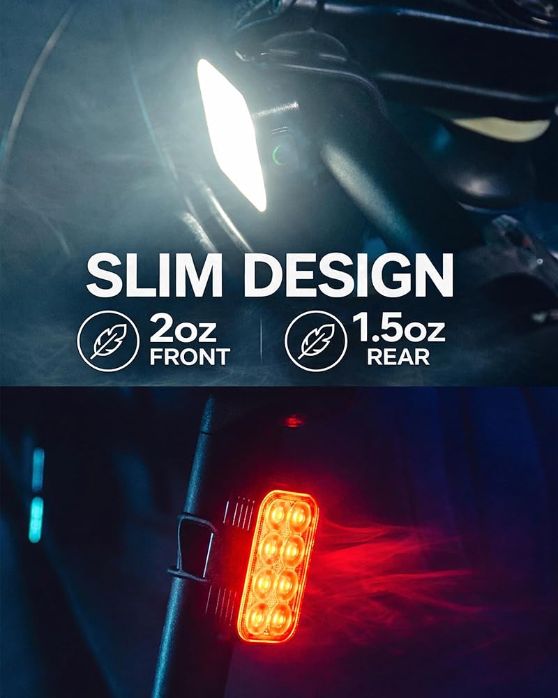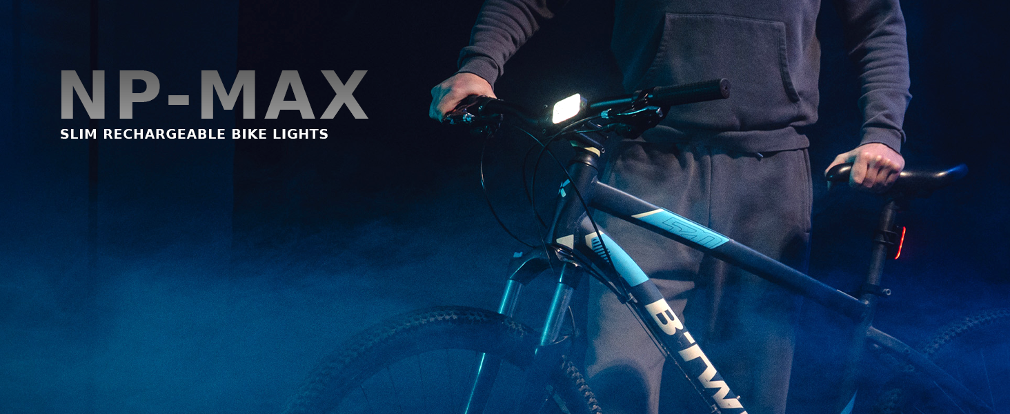 Super-Slim / Ultra-Light / Fully Versatile: Designed for quick and easy installation, NP-MAX straps on and releases in seconds for effortless use. Its compact, low-profile design delivers full versatility across mountain bike, road bike, BMX, dirt bike, scooter, electric scooter, electric bike, stroller, wheelchair, adult and kids bike lights. Mounts securely on front handlebars and rear seat posts, weighing just 45g front and 35g rear for a feather-light bike light set with zero drag.