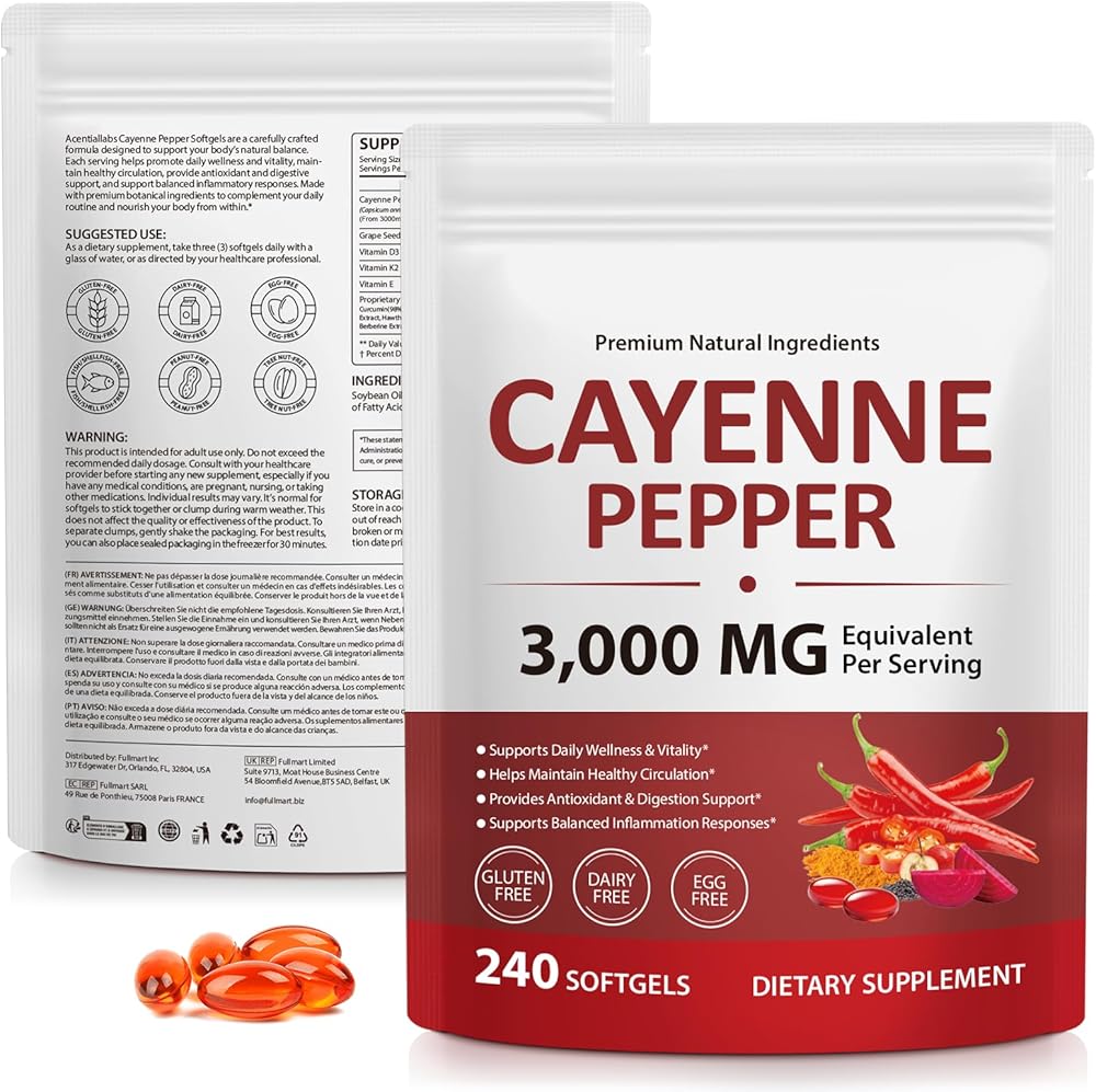 🌶️240 Softgels — A Complete 80-Day Supply: With each serving providing 3,000mg of powerful ingredients, our cayenne pepper softgels ensure long-lasting value, consistent quality, and daily nourishment from nature's best offerings.