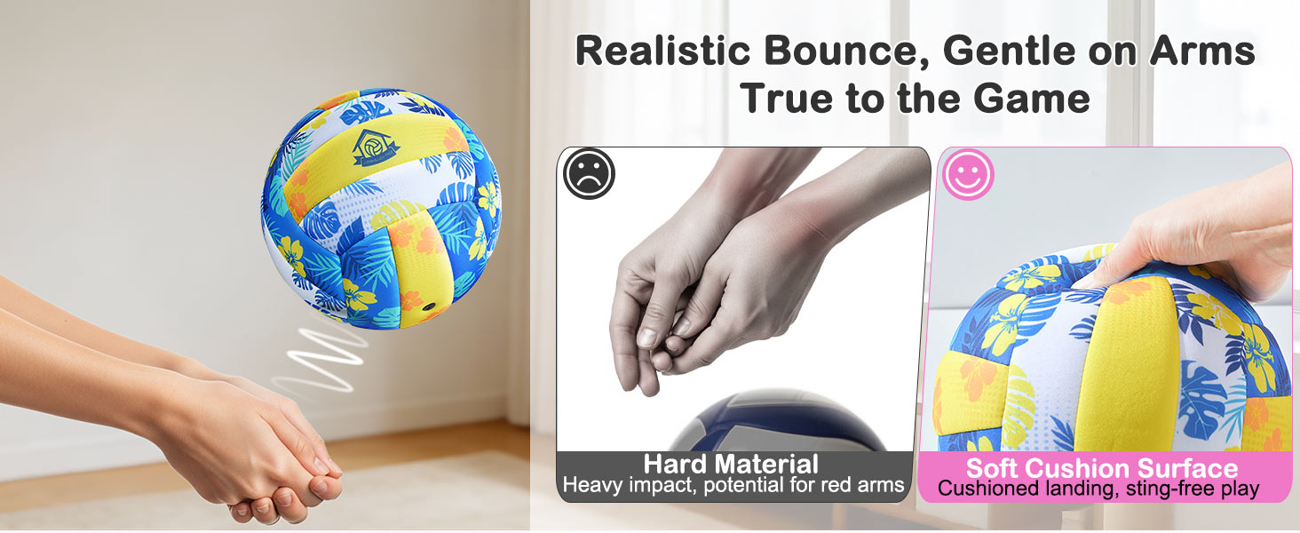 Impact-Absorbing for Comfortable Practice: Unlike Standard leather balls can hurt arms, causing kids to quit, our indoor soft volleyball has a cushioned foam cover that absorbs impact. This soft-touch, low-impact design removes fear, allowing beginners to focus on learning hits and volley without the pain.