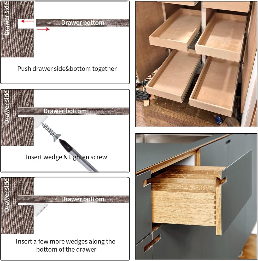 Wide Applications: These wedges are suitable for all kinds of furniture, bookcase, drawer, cabinet, wardrobe, etc., to quickly and easily eliminate the sagging of the drawer bottom.