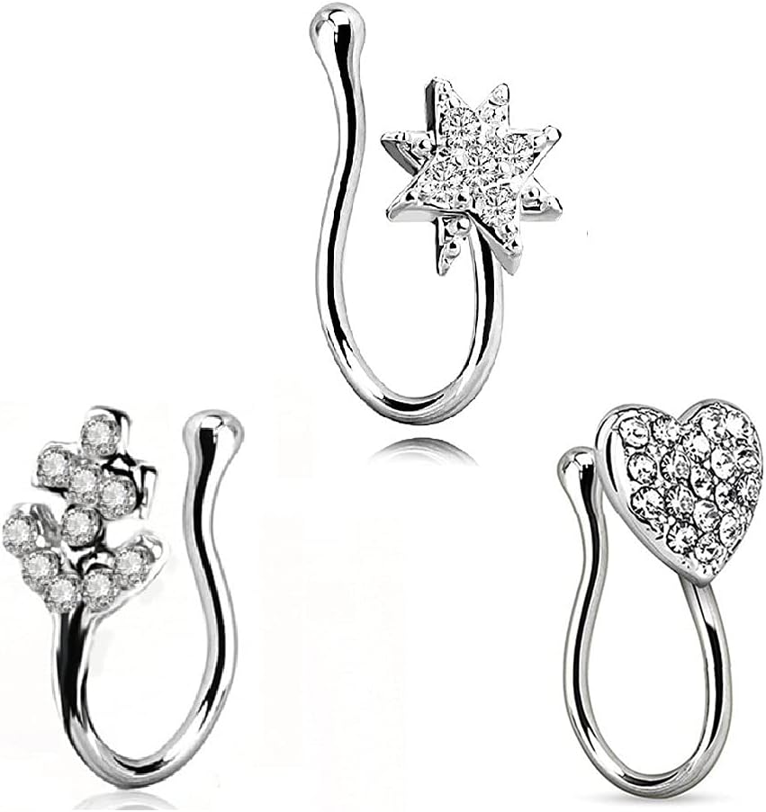 Caiyao 3Pcs Fake Nose Rings Clip on Nose Rings Non-Pierced Nose Hoop Ring Adjustable Nose Cuff Fake Septum Nose Hoop Rings Faux Lip Ear Nose Septum Ring Clip On Nose Hoop Rings