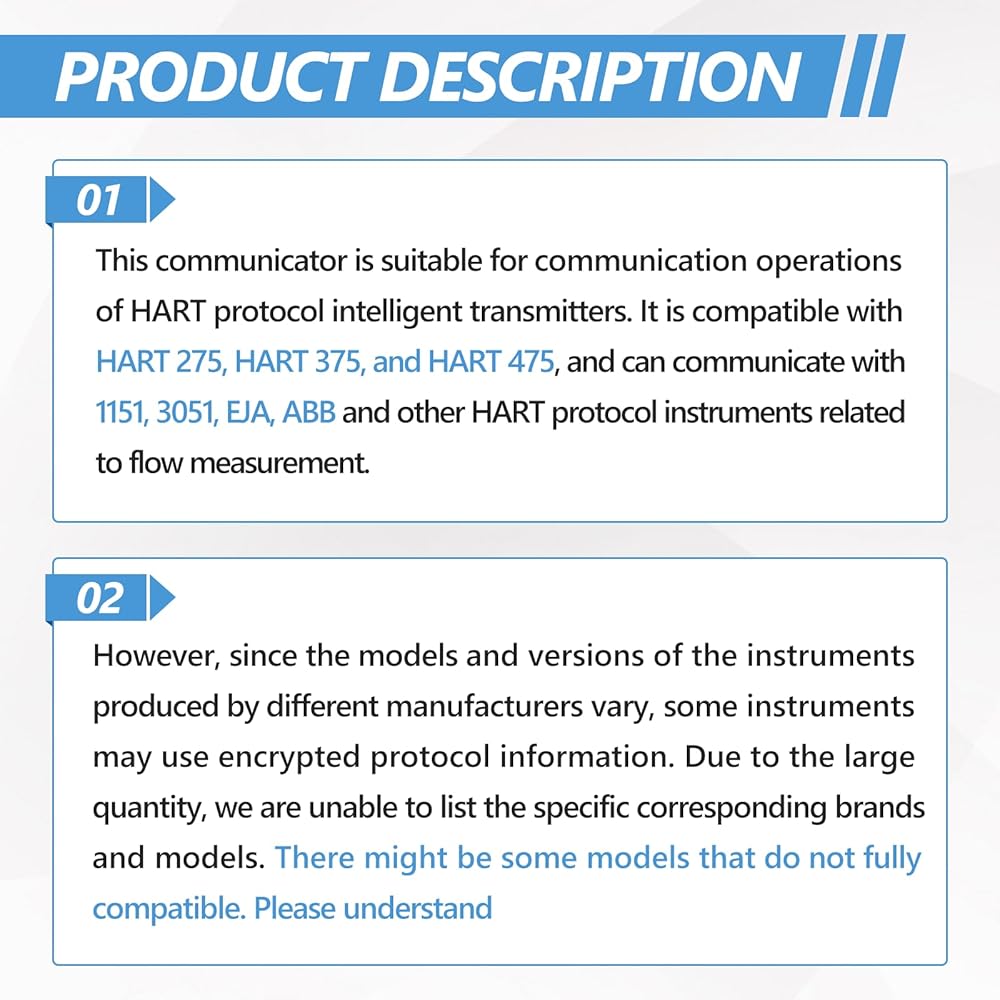 【Broad HART Protocol Compatibility】Supports communication with HART instruments including flow, temperature, pressure, and level transmitters. Delivers high compatibility for configuration and communication in complex industrial conditions