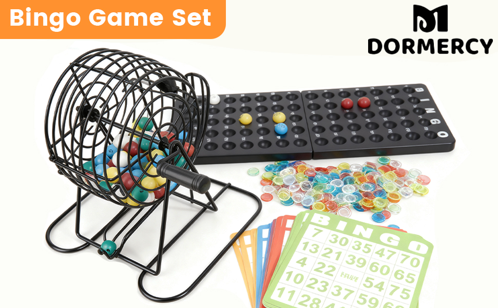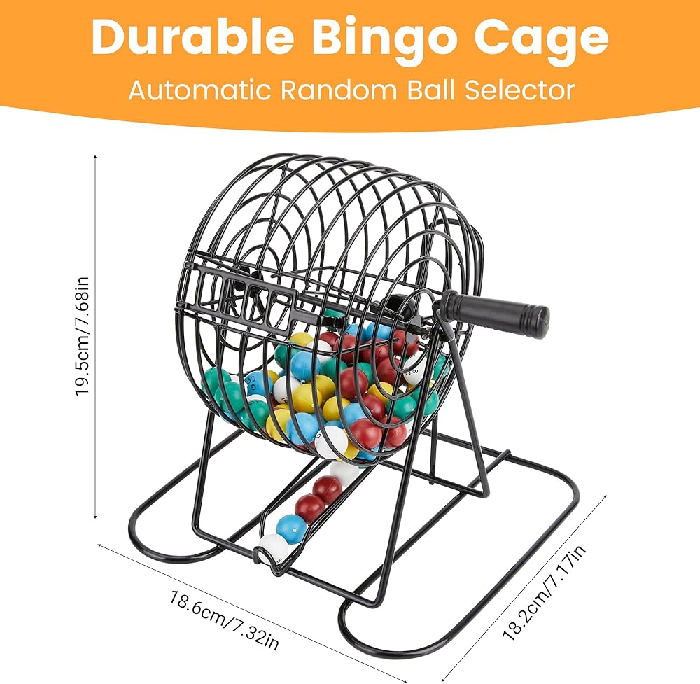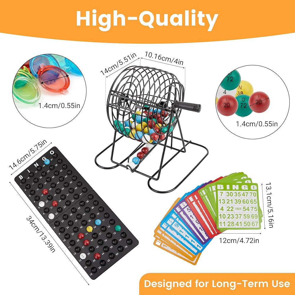 Bingo Game Set, Includes Bingo Wheel Cage, 75 Colored Bingo Balls, 50 Bingo Cards, 300 Colorful Bingo Chips, Master Board, Great for Large Groups, Parties