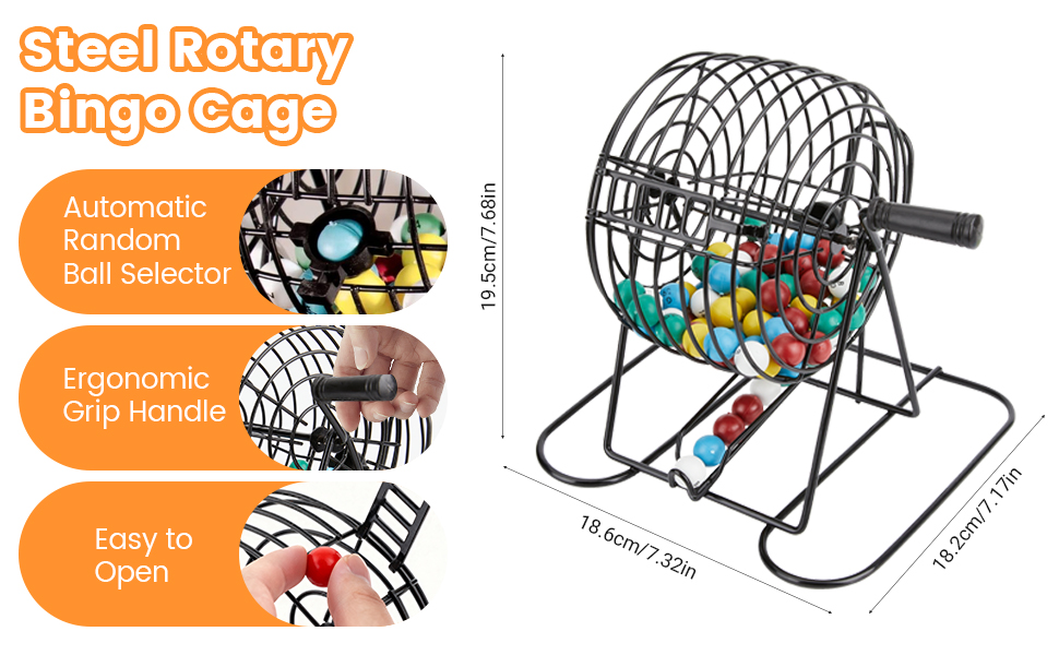 Professional Bingo Equipment: Weighted steel bingo balls with cage ensures fair random selection. Smooth-spinning mechanism prevents jams.