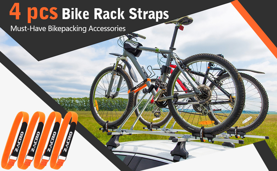 Size & Quantity: Zacro 4 piece set of bike rack strap is about 31.5 inches total length straps fit most types of bikes, bonded length is about 5.9 inches. In addition, two straps can be tied together to meet the length you desired. Note: Please measure your required length before purchase