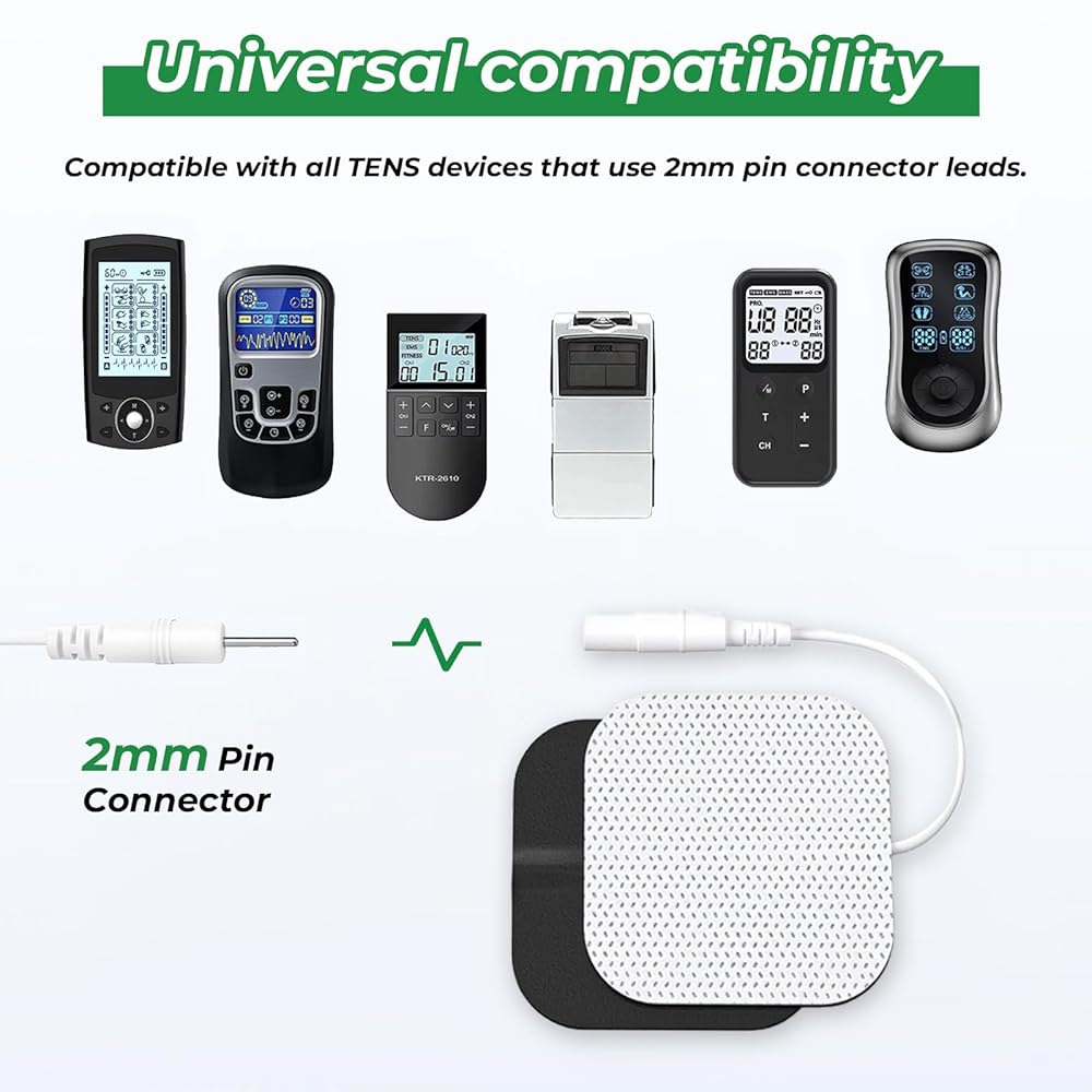 Universal Compatibility: Our TENS unit electrode pads feature a standard 2mm pin connector, making them compatible with most TENS and EMS units on the market. Perfect for use with your existing muscle stimulator or massager.