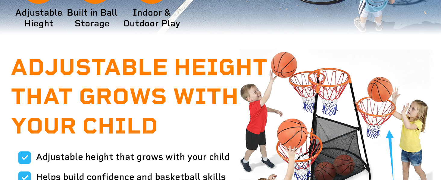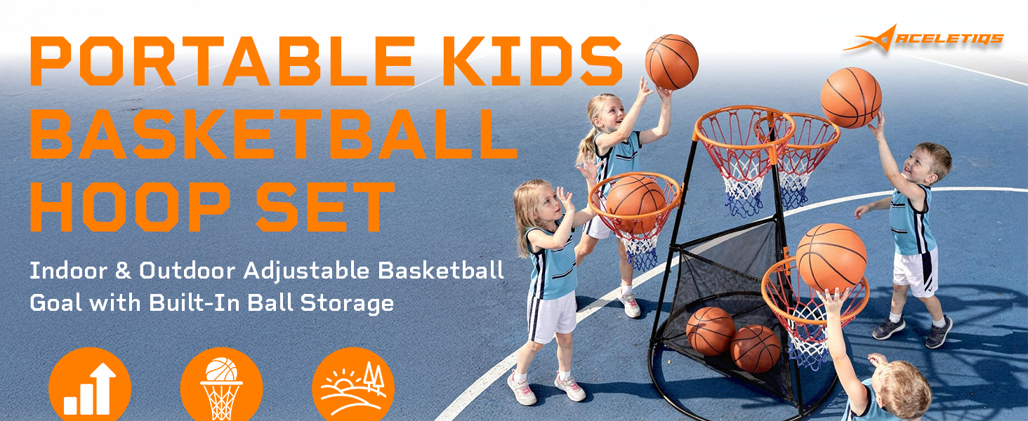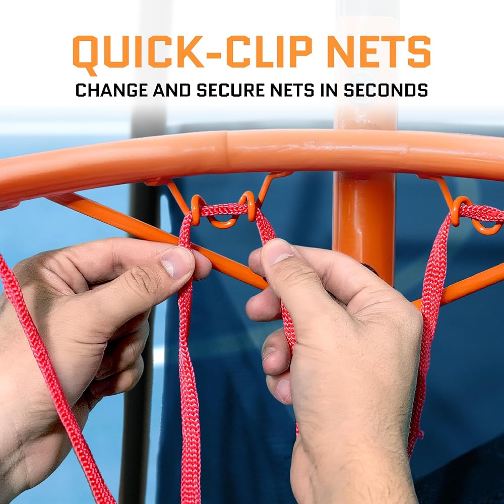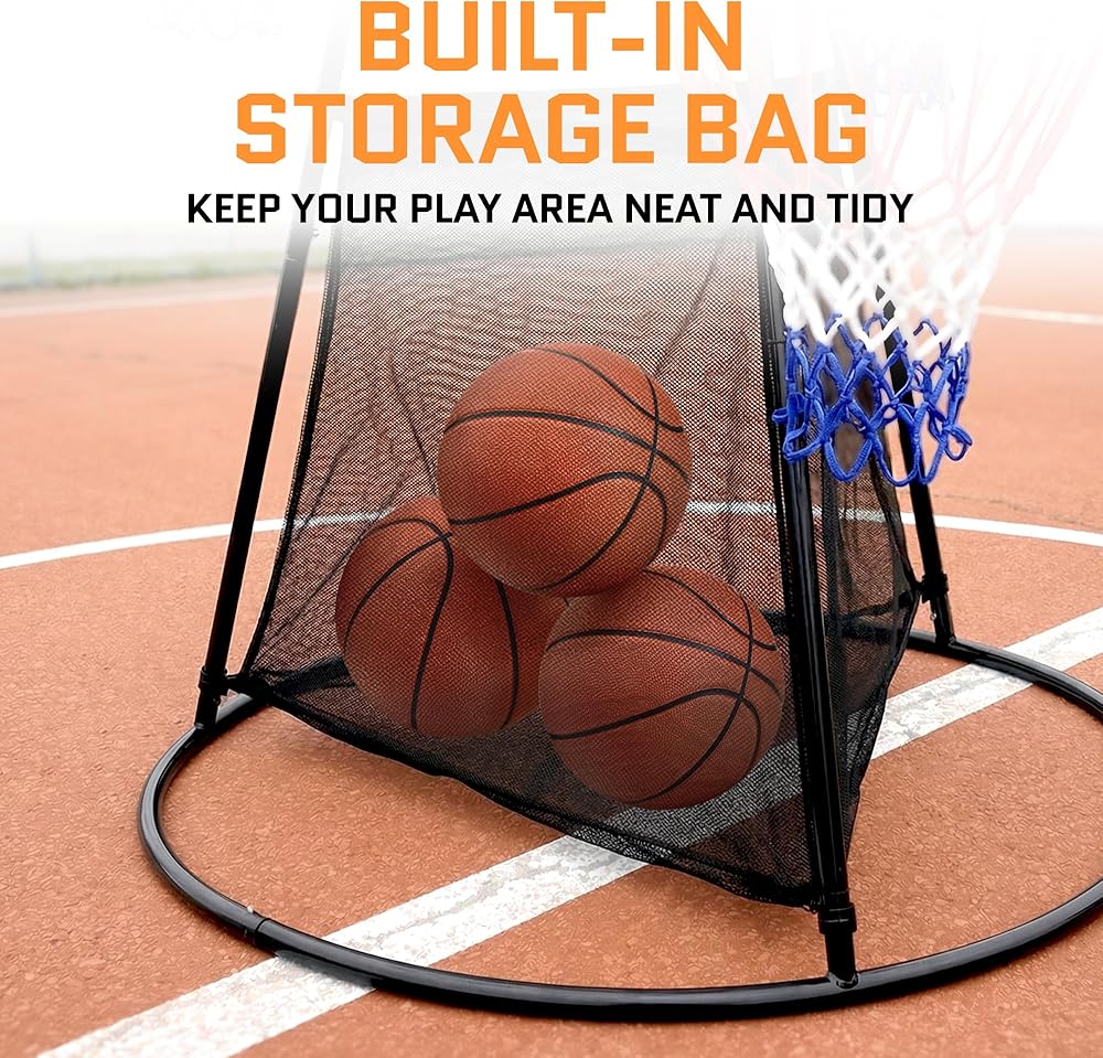 BUILT-IN BALL STORAGE NET - Convenient middle storage net keeps basketballs off the floor and within reach, helping kids stay organized and ready for nonstop play.