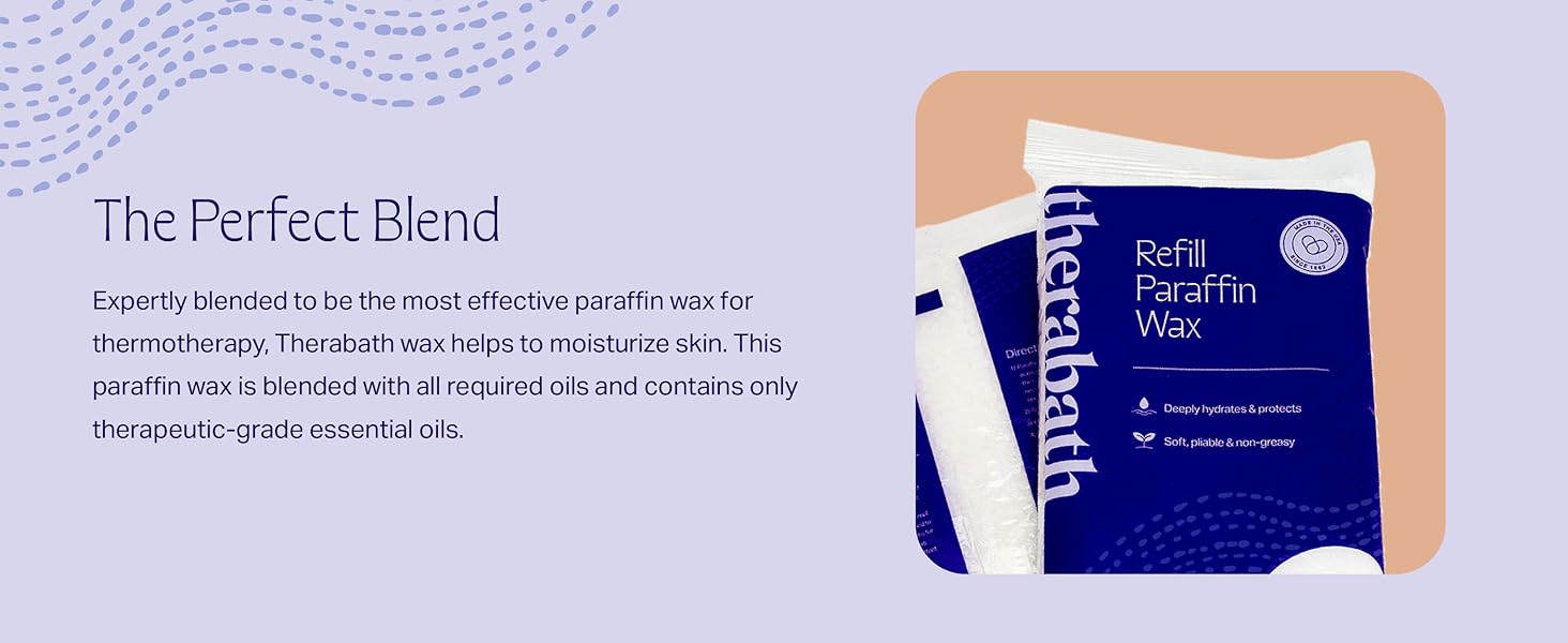 Expertly Blended. All Therabath paraffin wax is odorless, colorless, and hypoallergenic, then lightly scented and tinted. This thermotherapy wax is blended with all required oils—no need to add additional oil and contains only therapeutic-grade essential oils.