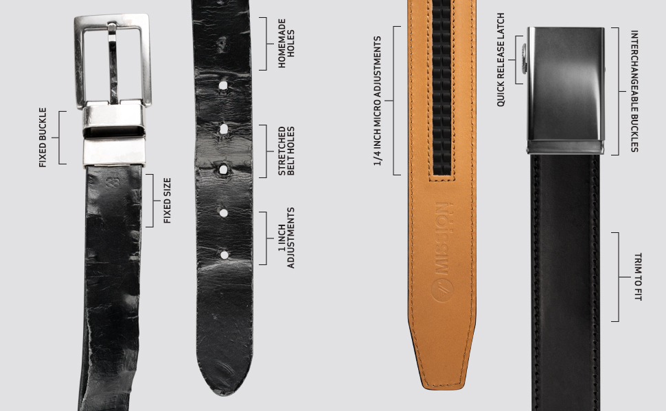 - Always a perfect fit - Scratch resistant ratchet buckle and 1/4" spaced teeth in leather adjusts to the exact size you need