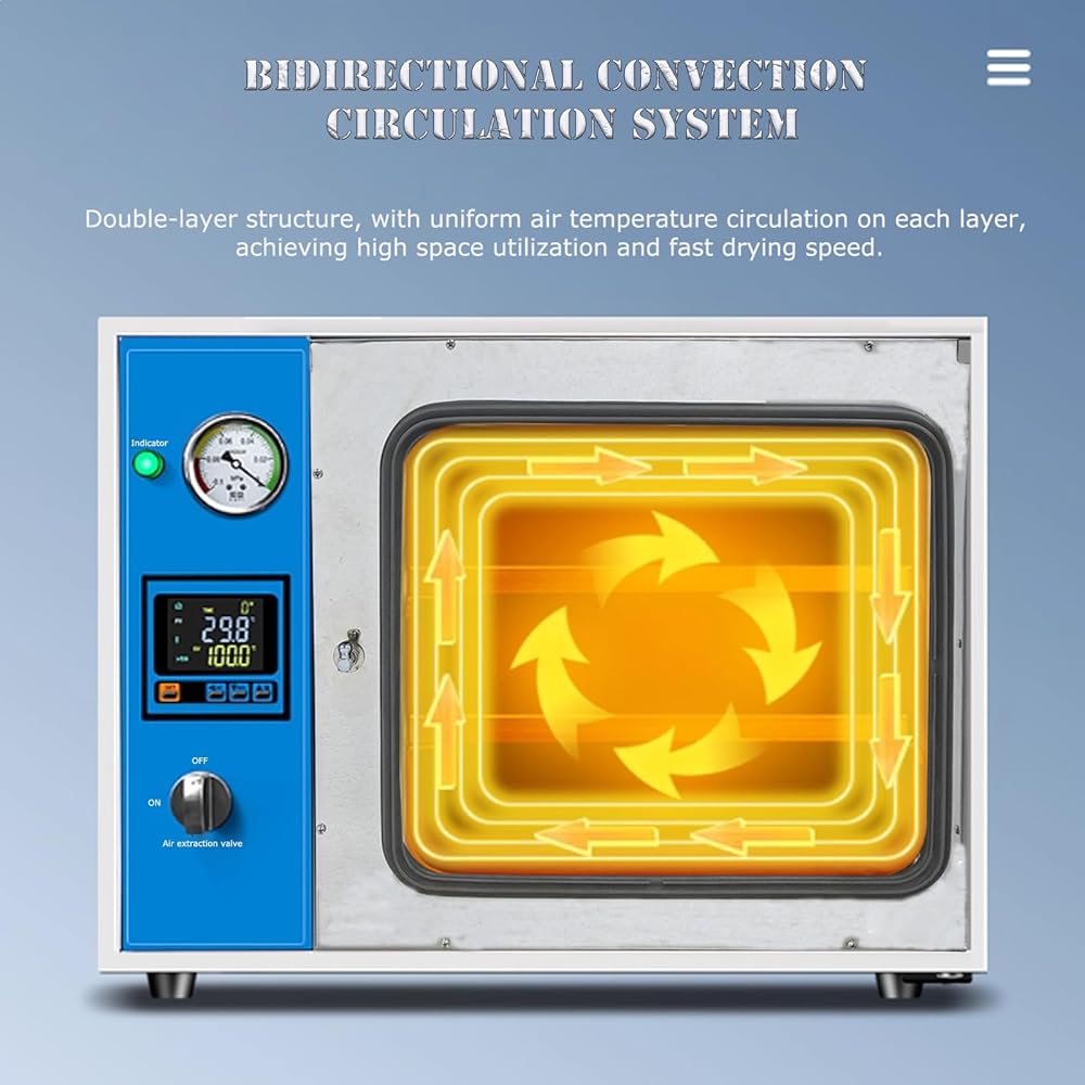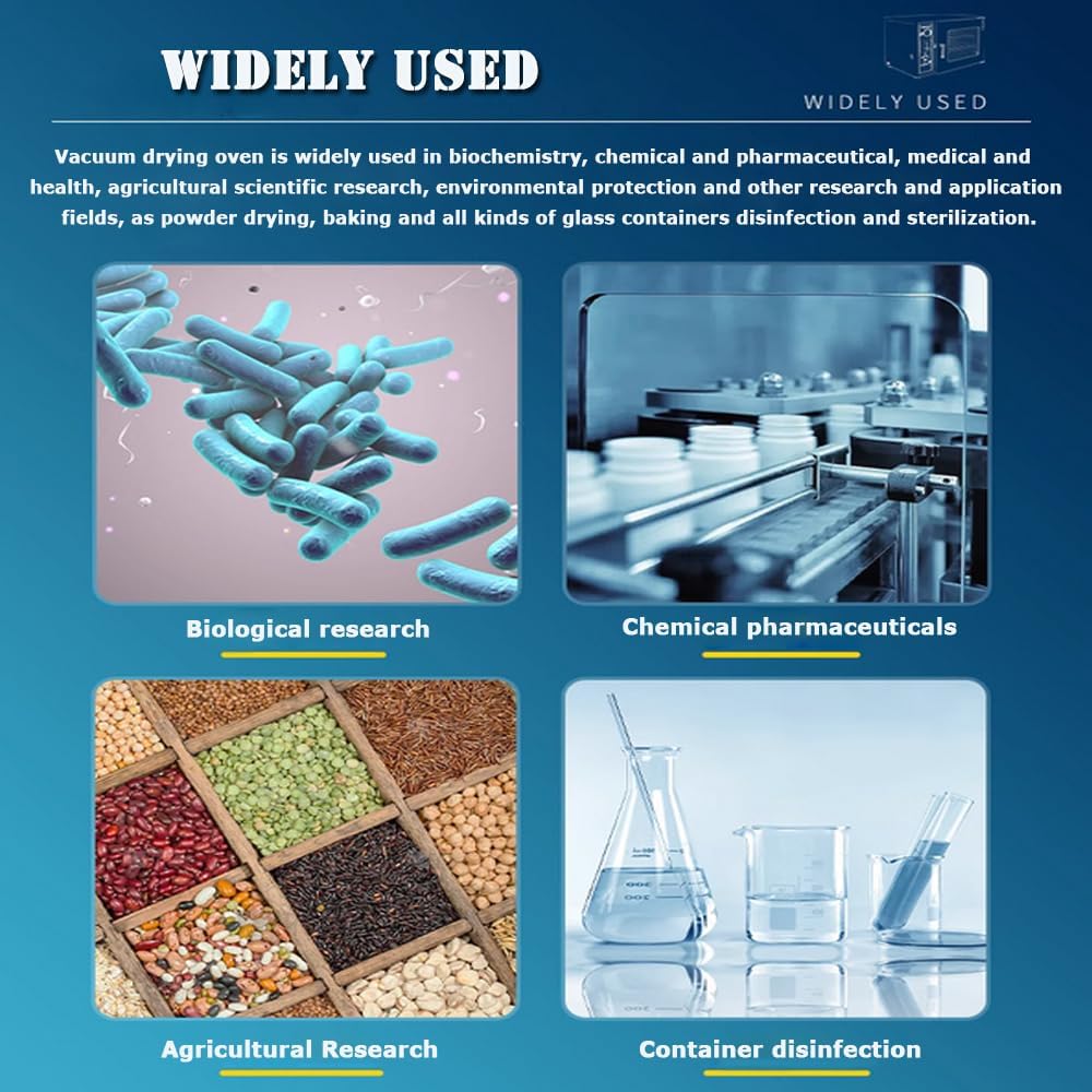 [Wide Application]:This device is used for drying of experimental glass instruments and sol-gel degassing, etc,widely used in drying and heating processes under vacuum conditions at laboratories in enterprises, schools and scientific institutions.