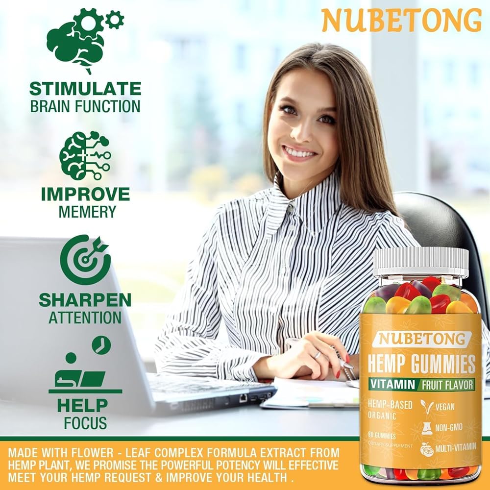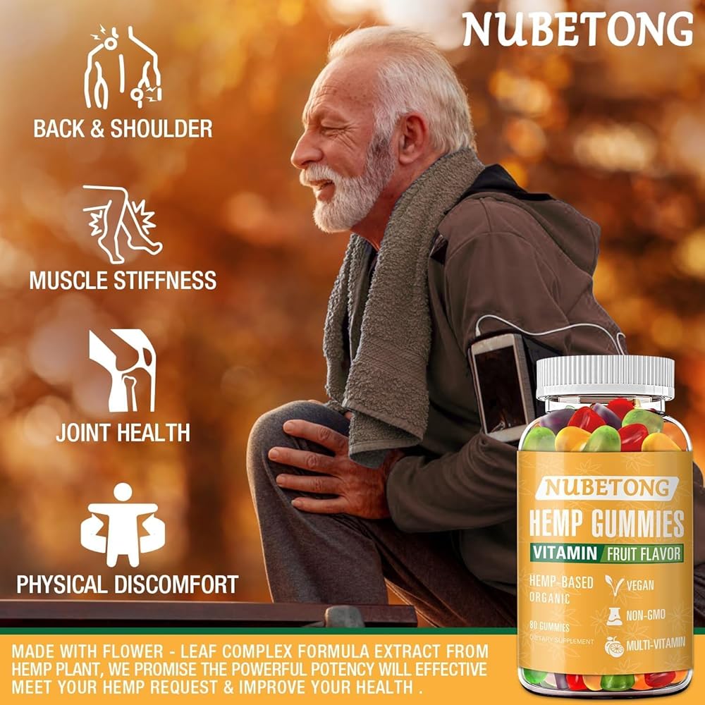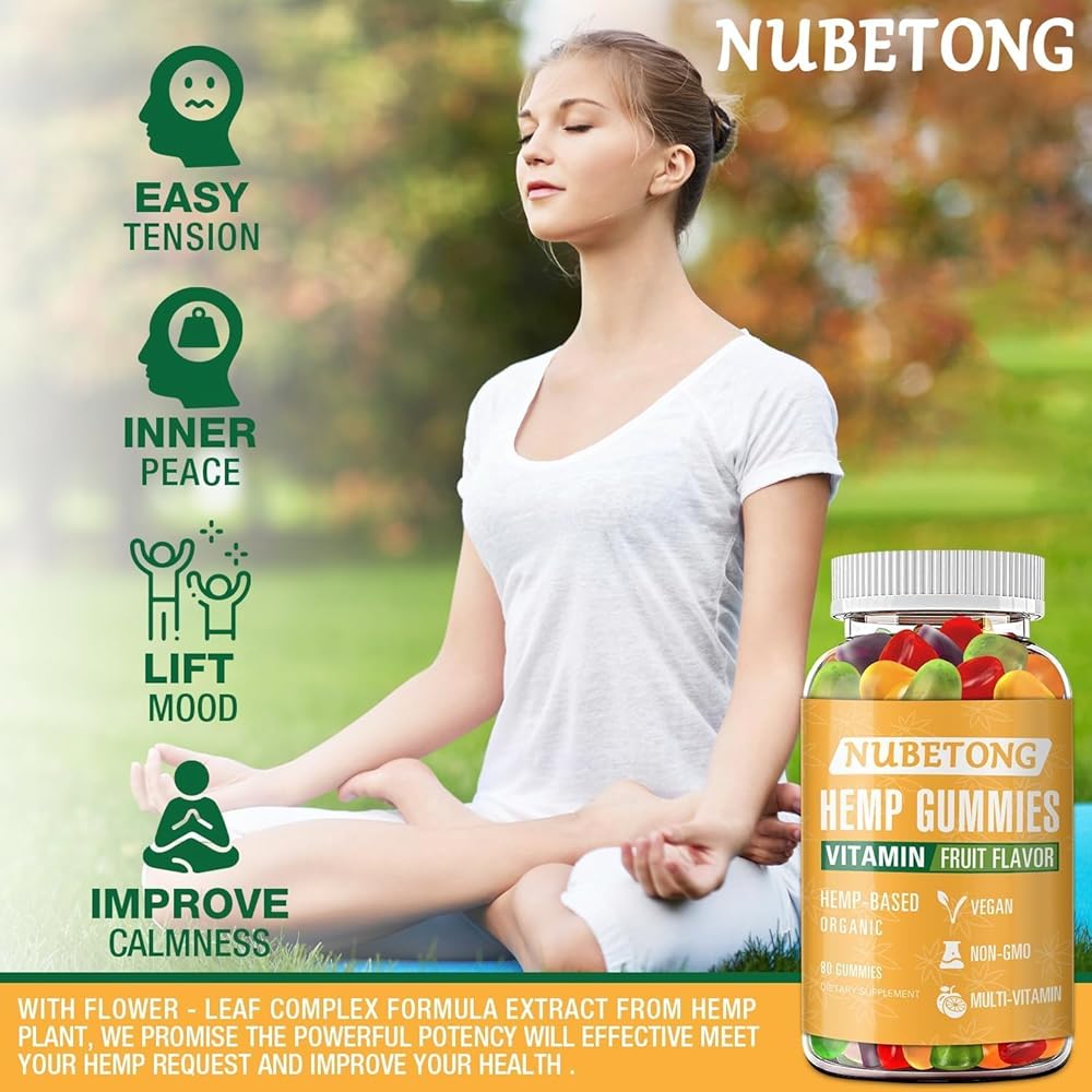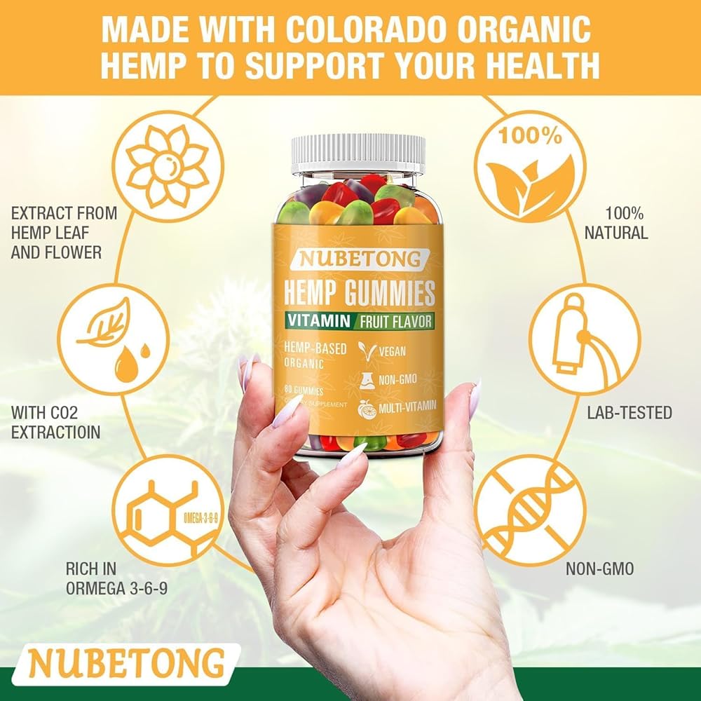 • Nubetong organic hemp gummies contain pure hemp plant extract. Each hemp gummy for relief has the potency with essential fatty and vitamins to promote overall health.