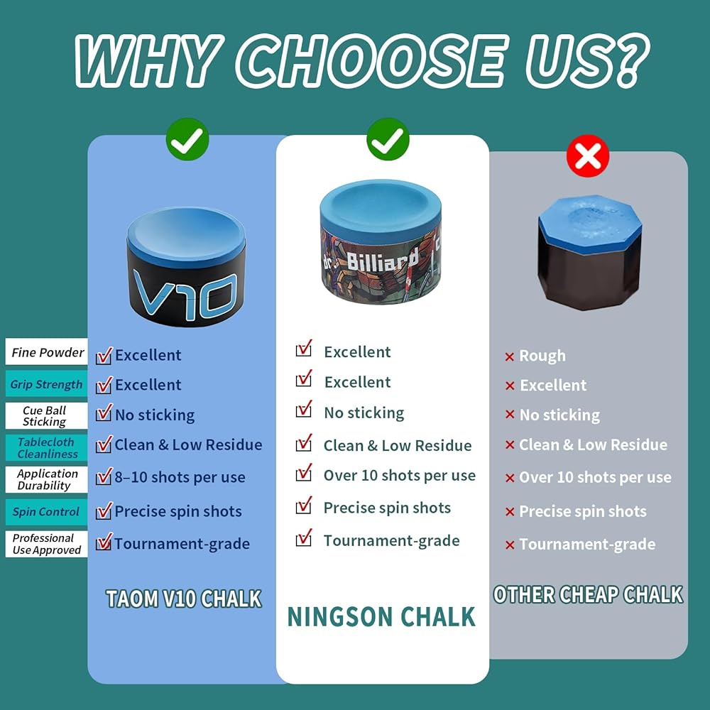 Durable and Long-Lasting: Engineered to last over 10 shots per application, unlike ordinary billiard chalk that needs to be replaced frequently. Billiard chalk is not easy to break and perfect for large tournaments and ensure consistent performance