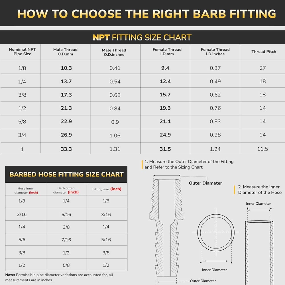 Secure Connection: This barb fitting fits PVC, PU, rubber hoses, and flexible tubing, providing a tight, leak-proof seal. Included stainless steel clamps ensure strong grip and prevent leaks or disconnections under pressure for reliable connections