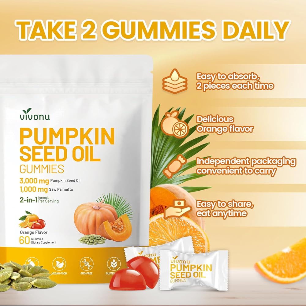 Cold-Pressed for Maximum Nutrient Retention:Our pumpkin seed oil is cold-pressed to preserve essential fatty acids (Omega 6 & 9), phytosterols, and antioxidants—ensuring optimal potency and purity. Individually packaged for easy carrying, each pack contains 60 pieces. Take 2 gummies daily.