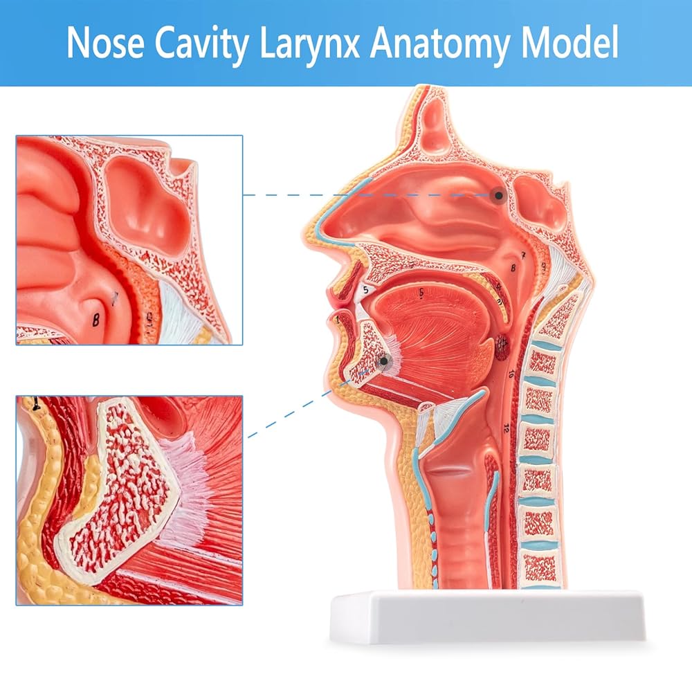 【Detailed Cross-Section Design】Features a clear sagittal (side) cross-section that reveals internal anatomy (e.g., nasal conchae, vocal cords, pharyngeal regions), making it easy to explain functions like breathing, swallowing, or speech physiology