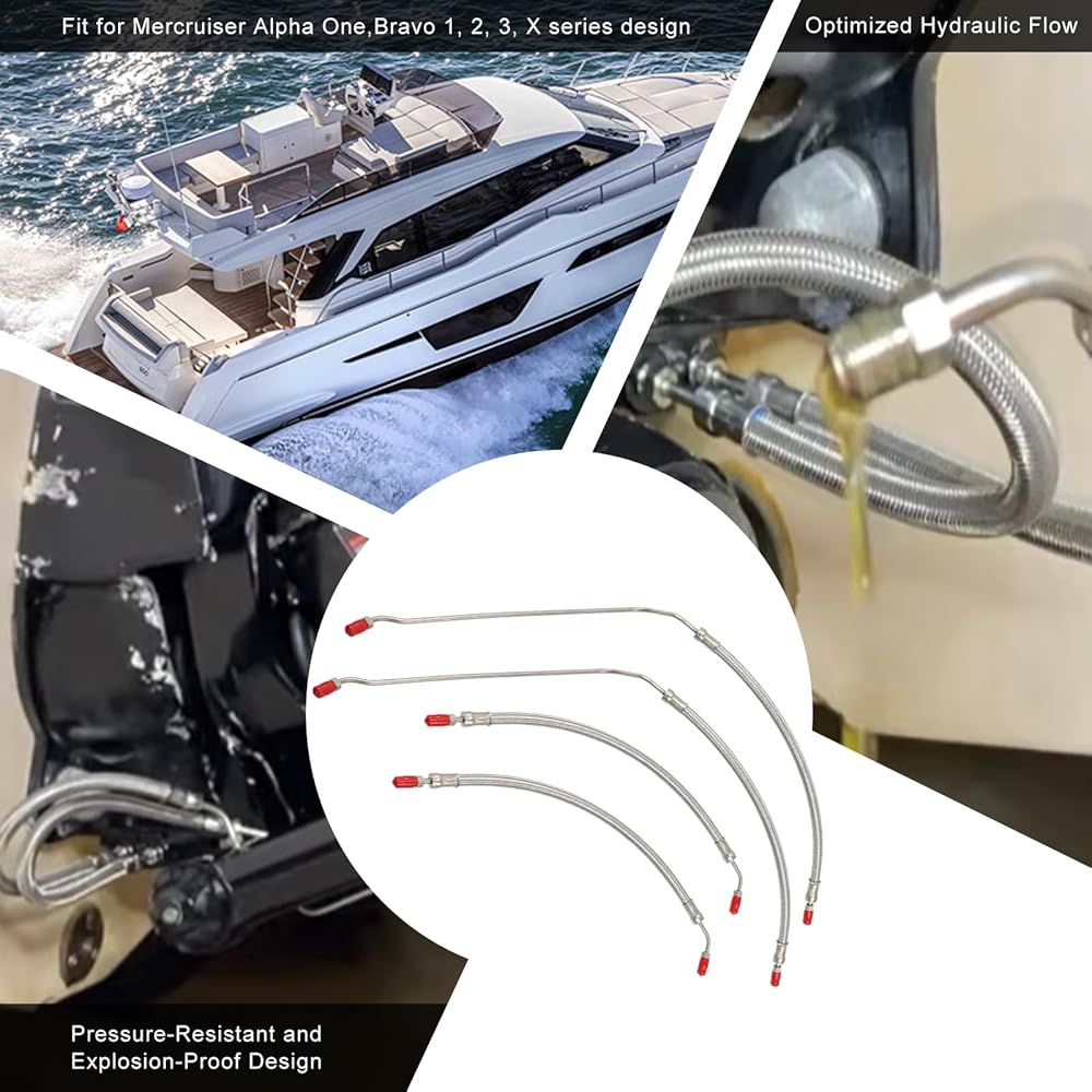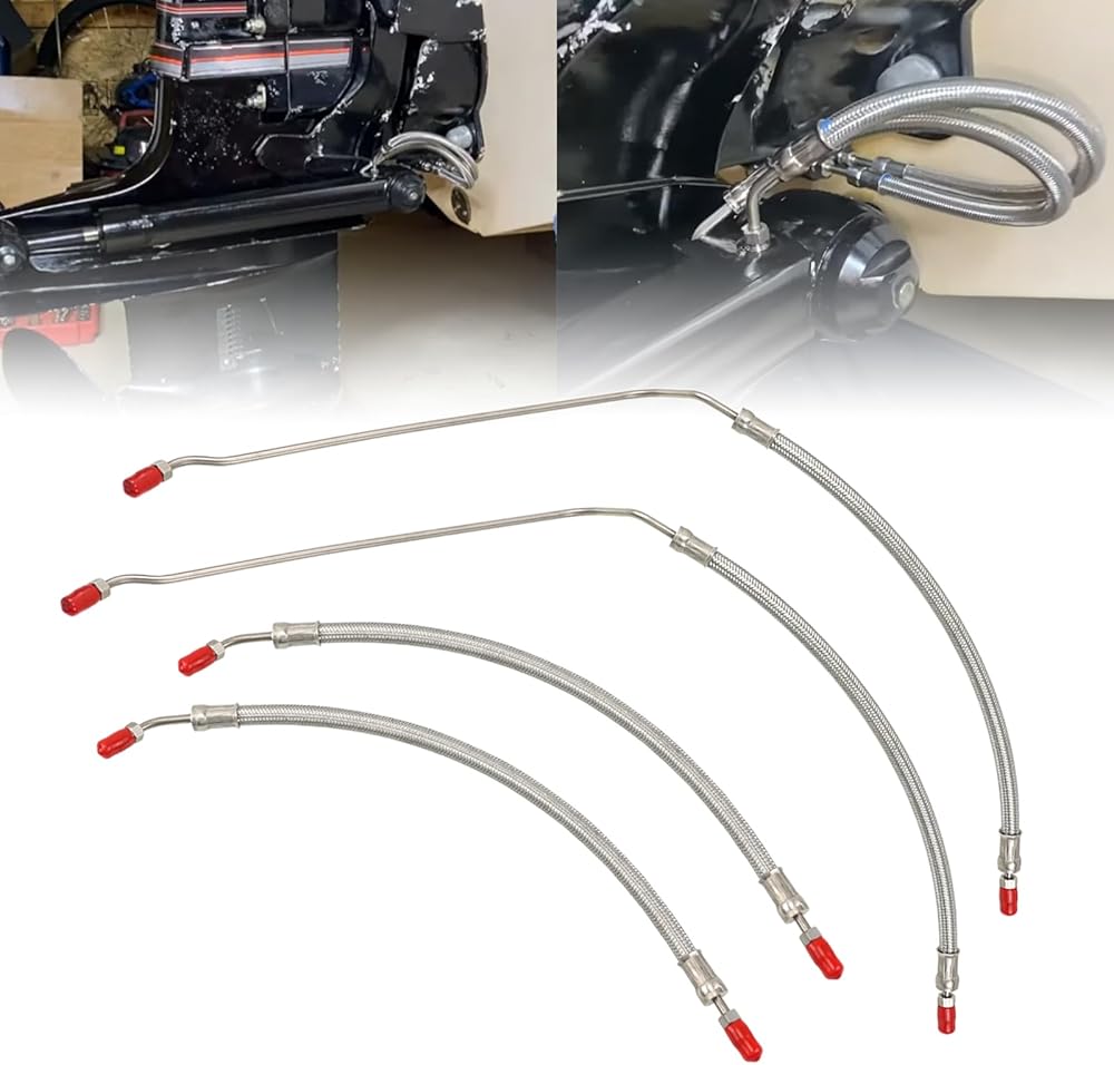 [High Performance Replacement] This complete 4-hose hydraulic kit services both port and starboard trim/tilt cylinders, ensuring smooth hydraulic operation and preventing leaks or power loss. Perfect for replacing damaged, corroded, or leaking lines to maintain optimal boat lift and stability